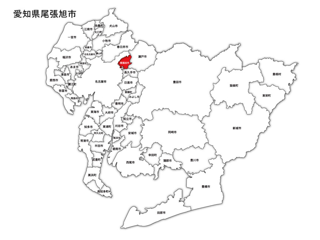 尾張旭市は、東側は瀬戸市、西側は名古屋市守山区に挟まれています。