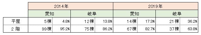 データは、2014年の「平屋」の棟数と2019年、昨年の棟数を、愛知県、岐阜県それぞれで比較してみました。やはり、2階建てが多いのは一目瞭然ですが、それでも、愛知県では12ポイント、岐阜県においては22ポイントも増えています。実際に建築しているご家族が増えているということ。需要はやはりあり、人気になっていると言っても過言ではありません。