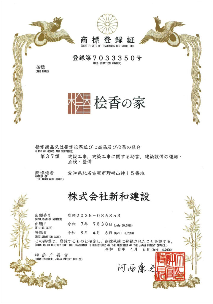 桧香の家の商品名(ロゴ) が商標登録されました。