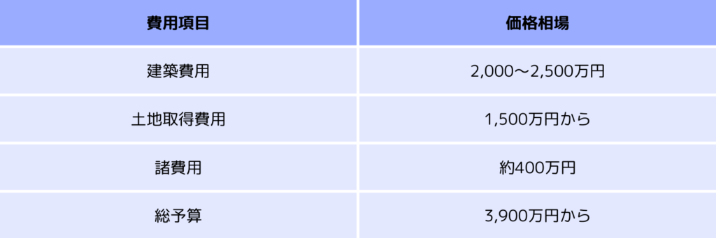 建物コストはおよそ2,000〜2,500万円が費用の相場です。