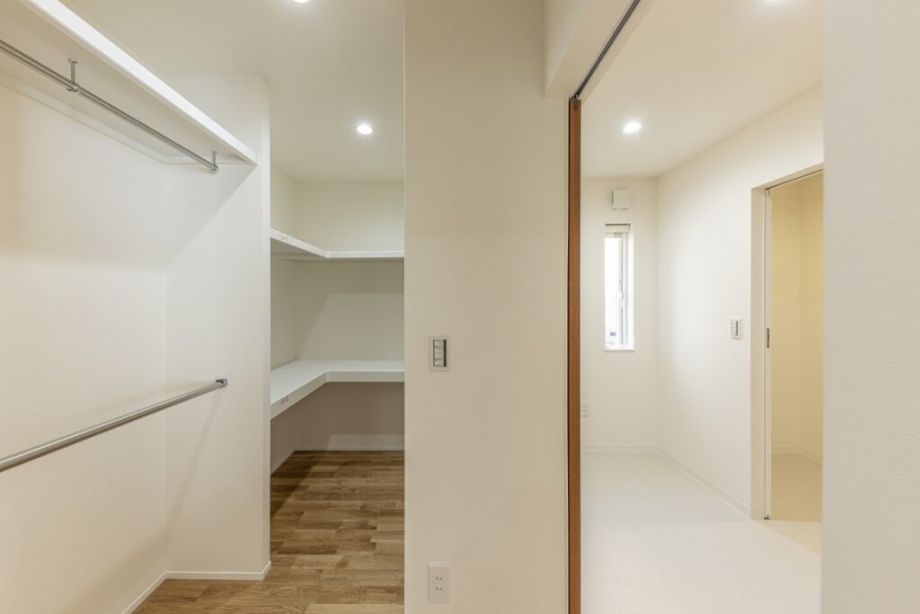 キッチンと玄関の間にパントリーを設けると、買い物後の片付けがスムーズになります。また、洗面脱衣室の近くにファミリークローゼットを配置することで、洗濯から収納までの流れが途切れにくくなります。