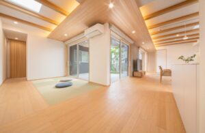 平屋の設計のポイントやコストを抑える仕組みを理解した上で、実際に建てられた家を見ることは、ご自身の理想を形にし、実際の生活をイメージするために非常に役立ちます。ここからは、私たち新和建設が土岐市周辺の環境に合わせて設計した、高度な工夫が詰まった平屋の建築事例をご紹介します。