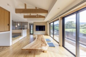 間取りの工夫と同じくらい、あるいはそれ以上に、家の中の暖かさや涼しさを決めるのが「どのような素材を使って家を建てるか」です。特に、屋根や外壁から外の温度の影響を直接受けやすい平屋において、私たちは無垢の木材が持つ断熱の力を活かすことを強くお勧めしています。