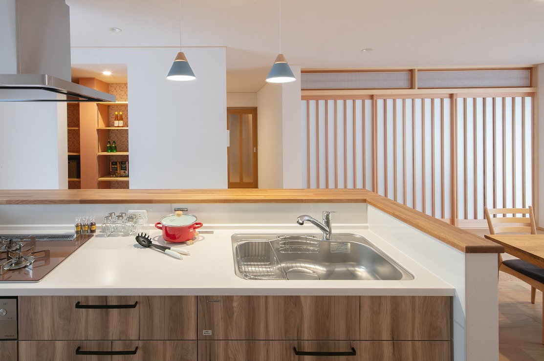 木をつかった造作キッチンは、新和建設ならではの提案。