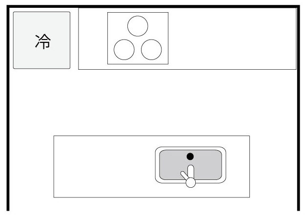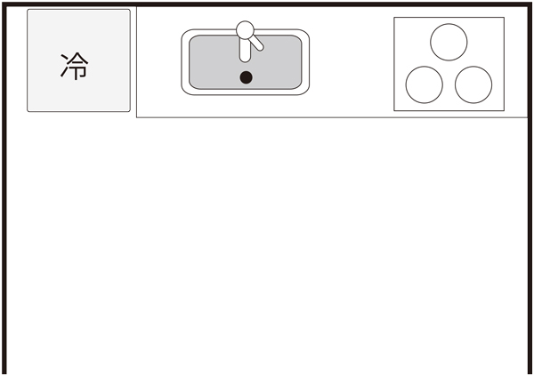 一般的なI型キッチンの作業スペースは、360cm以内が目安。横長すぎると動作が増え、調理効率が下がります。