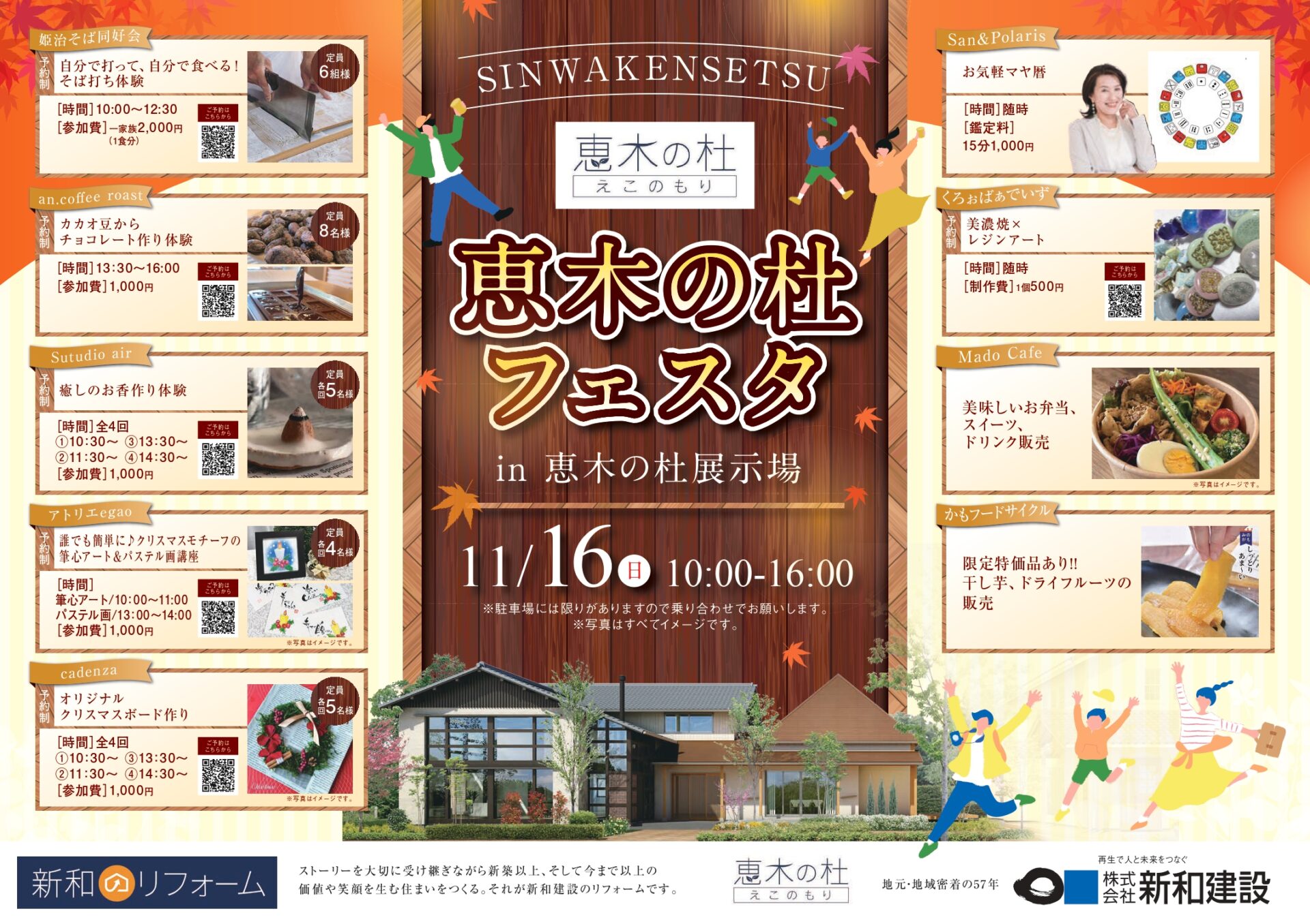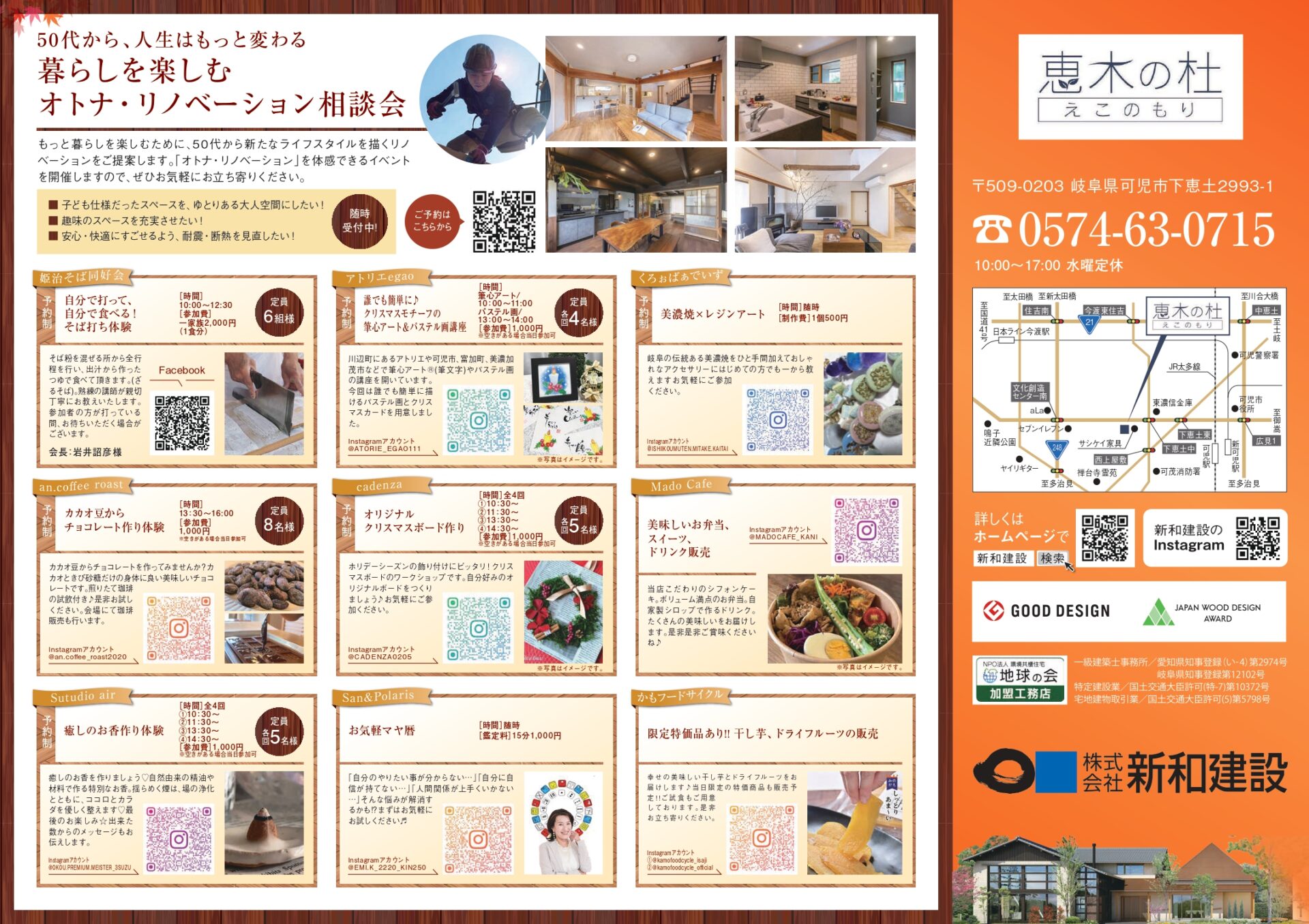 ・お問合せ/お申し込み:新和建設 恵木の杜(0574-63-0715)または下記イベント予約フォームへ