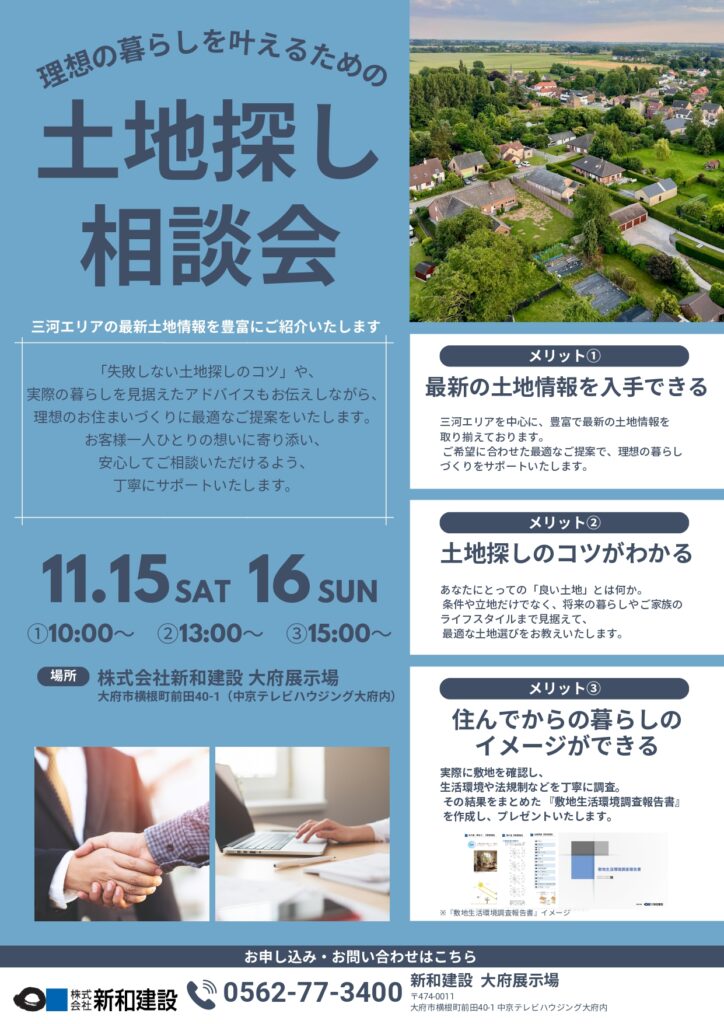 ・お問合せ/お申し込み:新和建設 大府展示場(0562-77-3400)または下記イベント予約フォームへ