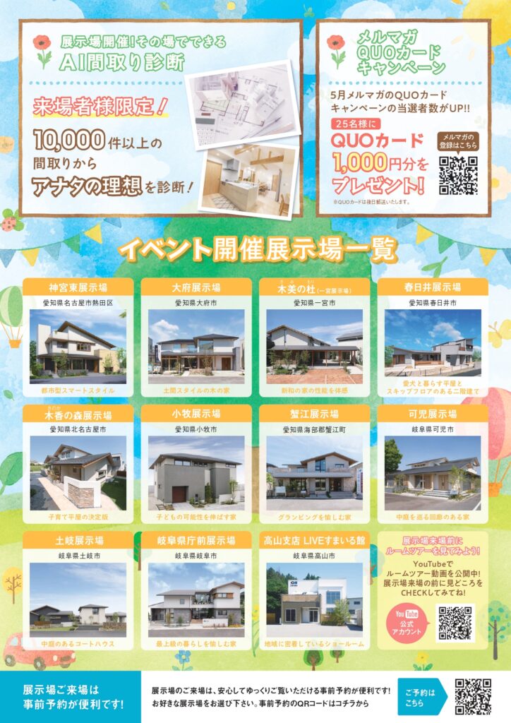 各展示場では、ゴールデンウィークもたのしい企画盛りだくさんでお待ちしております。