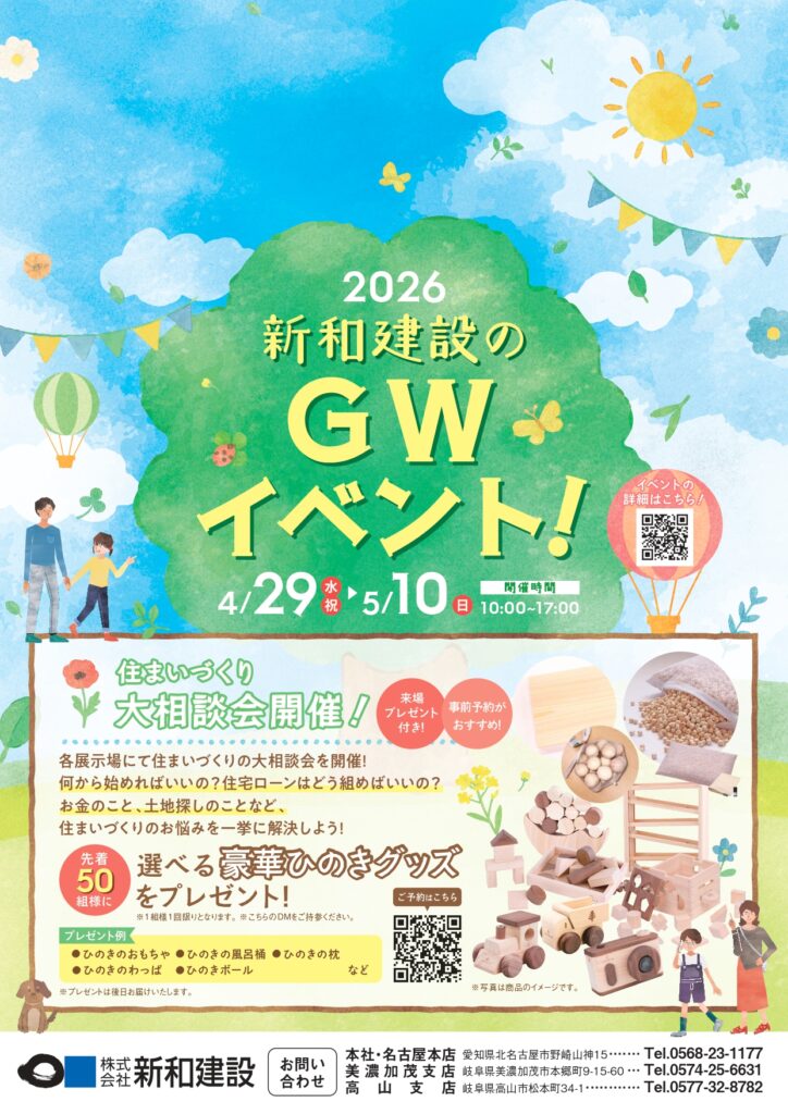 ・お問合せ/お申し込み:新和建設 本店営業部(0568-23-1177)または下記イベント予約フォームへ