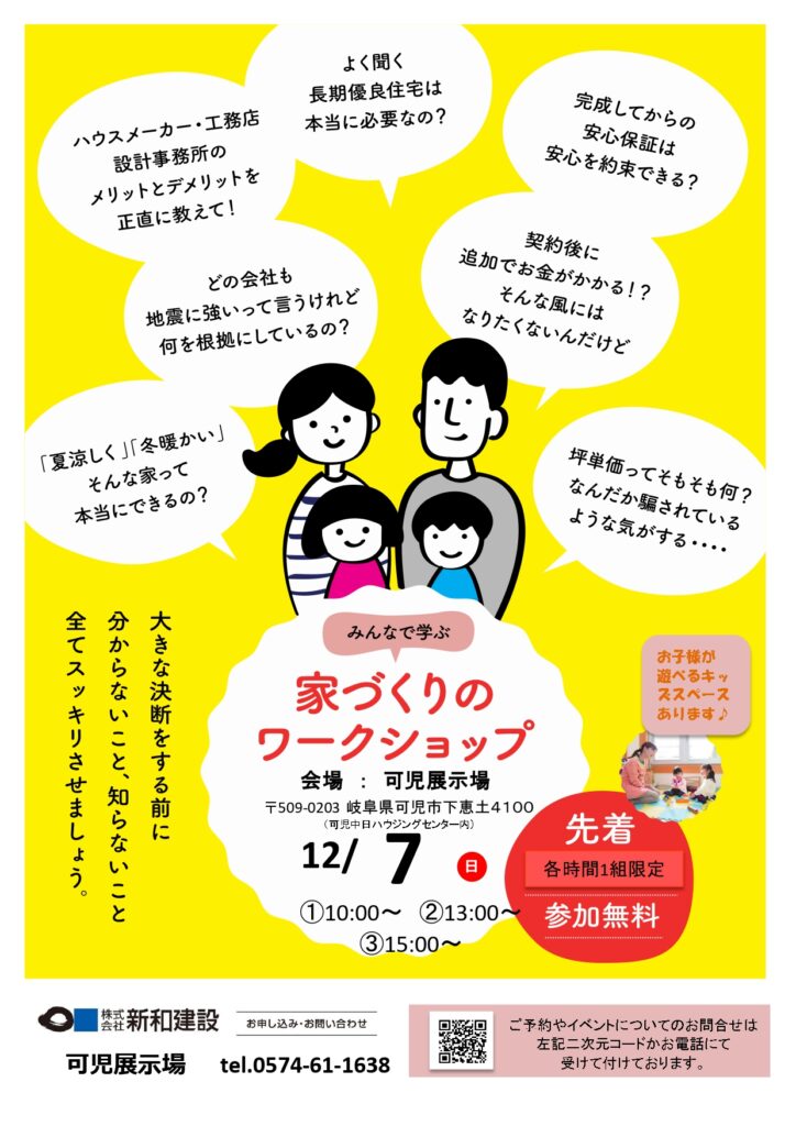 ・お問合せ/お申し込み:新和建設 可児展示場(0574-61-1638)または下記イベント予約フォームへ