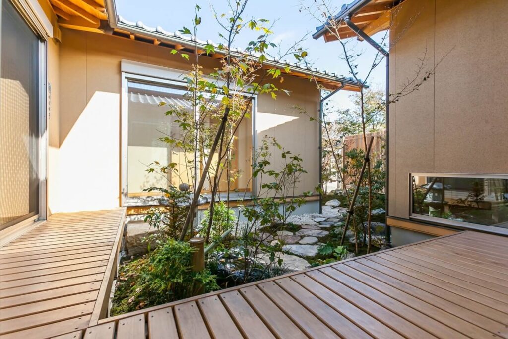 建物や外塀に囲まれた中庭は、プライベート感と開放感を両立できる空間です。外からの視線が気にならないので、家族そろって中庭でバーベキューなどを楽しむのも良いですね。開口部が設けやすくなるので、お住まい全体の明るさや風通しのよさを生み出すのにも非常に効果的です。