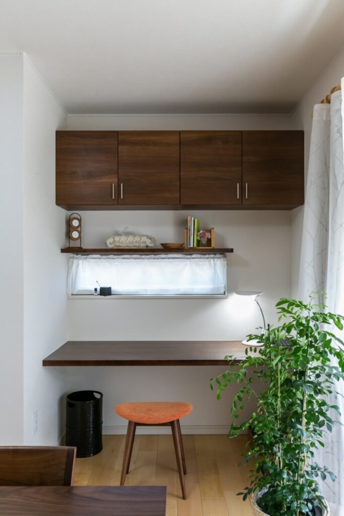 リビングや寝室の一角につくる書斎スペースは、ちょっとしたパソコン作業や読書、リモートワークなどにとても便利です。家族の気配を感じながら、すこしだけプライベート感を味わえるのが魅力ですね。
