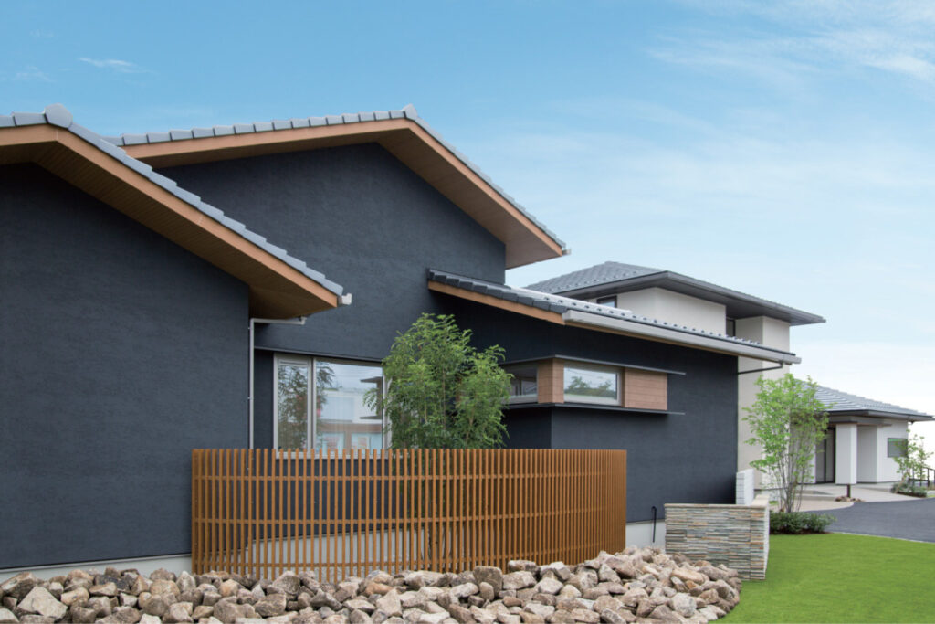 シンプルながら優しく温かみのある外観を演出できるのが塗り壁の特長です。サイディングやタイルと違って、塗り壁は職人がすべて手作業で仕上げるので、他にはない唯一無二の風合いを楽しむことができるのが魅力です。また、燃えにくい素材のため防火性にも優れています。