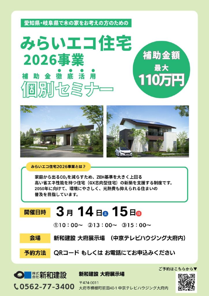 ・お問合せ/お申し込み:新和建設 大府展示場(0562-77-3400)または下記イベント予約フォームへ
