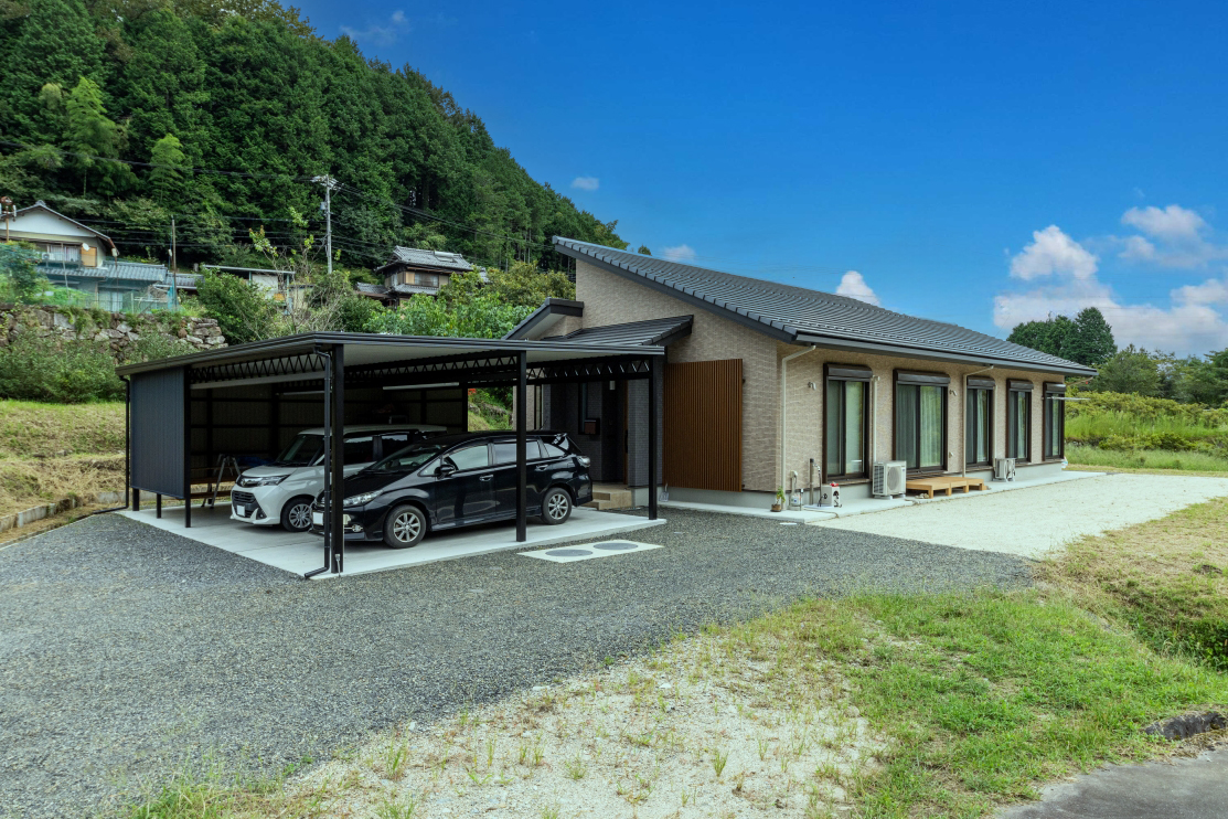 長きにわたって暮らしやすく、メンテナンスもかからないお住まいにしたい。そんなお施主様の思いもあり、平屋を計画する所からスタートしました。外壁にはメンテナンス性の高いタイルを、屋根には耐久性の高い瓦を採用しました。玄関正面のデザインは、タイルの色と柄を一部変更し、木目調の格子をつけることでモダンな雰囲気を演出しています。