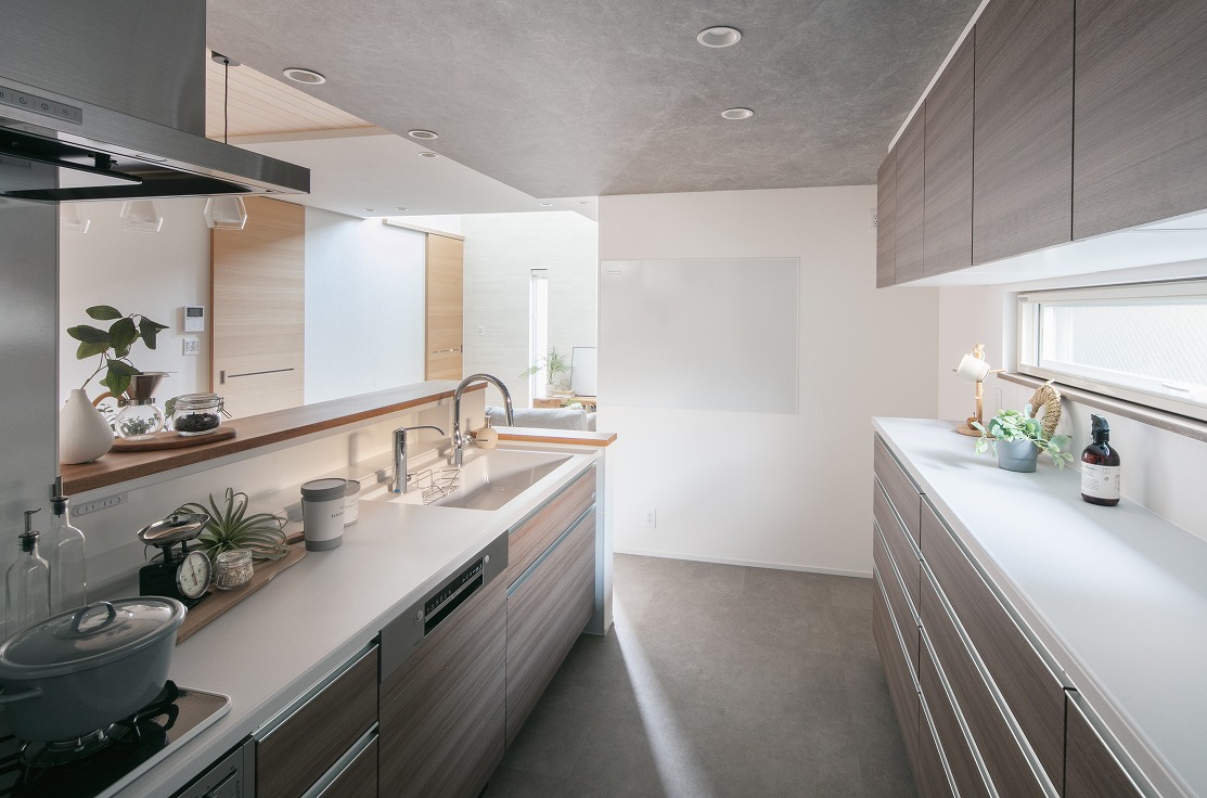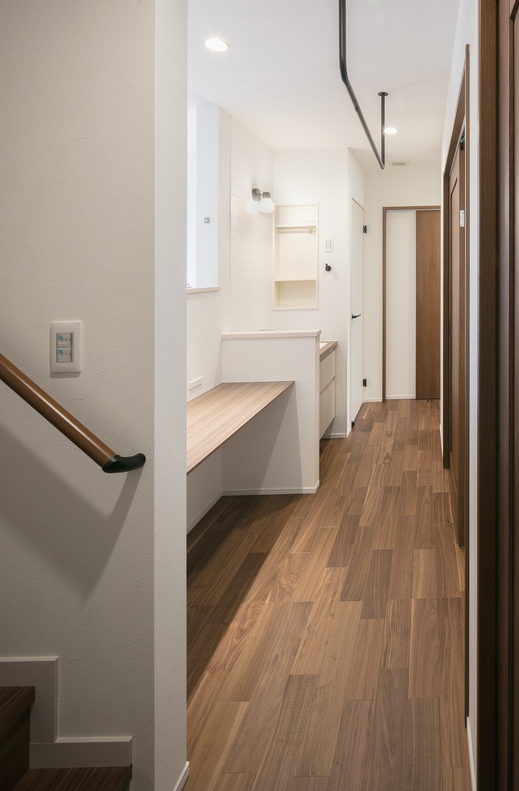 土地探しから一緒にお手伝いさせていただきました。街中でも日当りを諦めたくない、という思いで間取りを提案いたしました。また、ご予算の範囲でデザインのご希望も叶えられるようにたくさん悩んだ末、素敵なお住まいに仕上がりました。