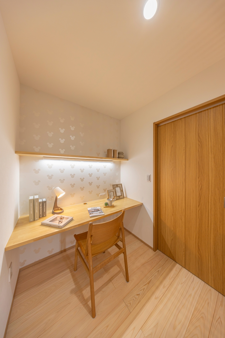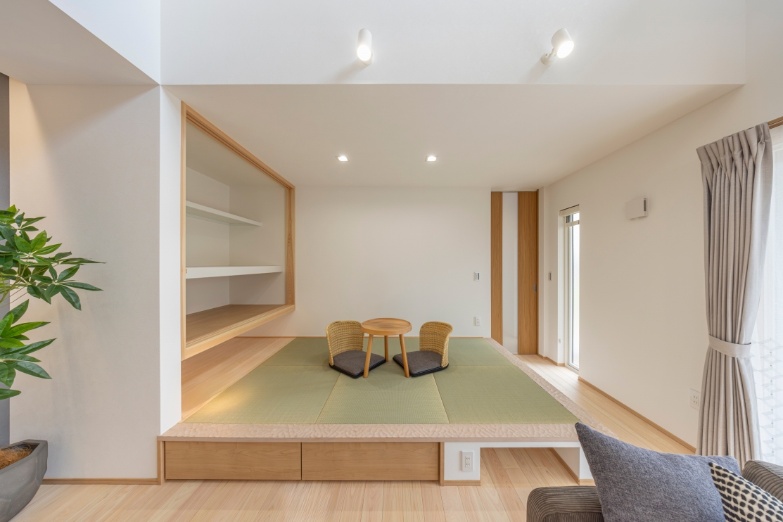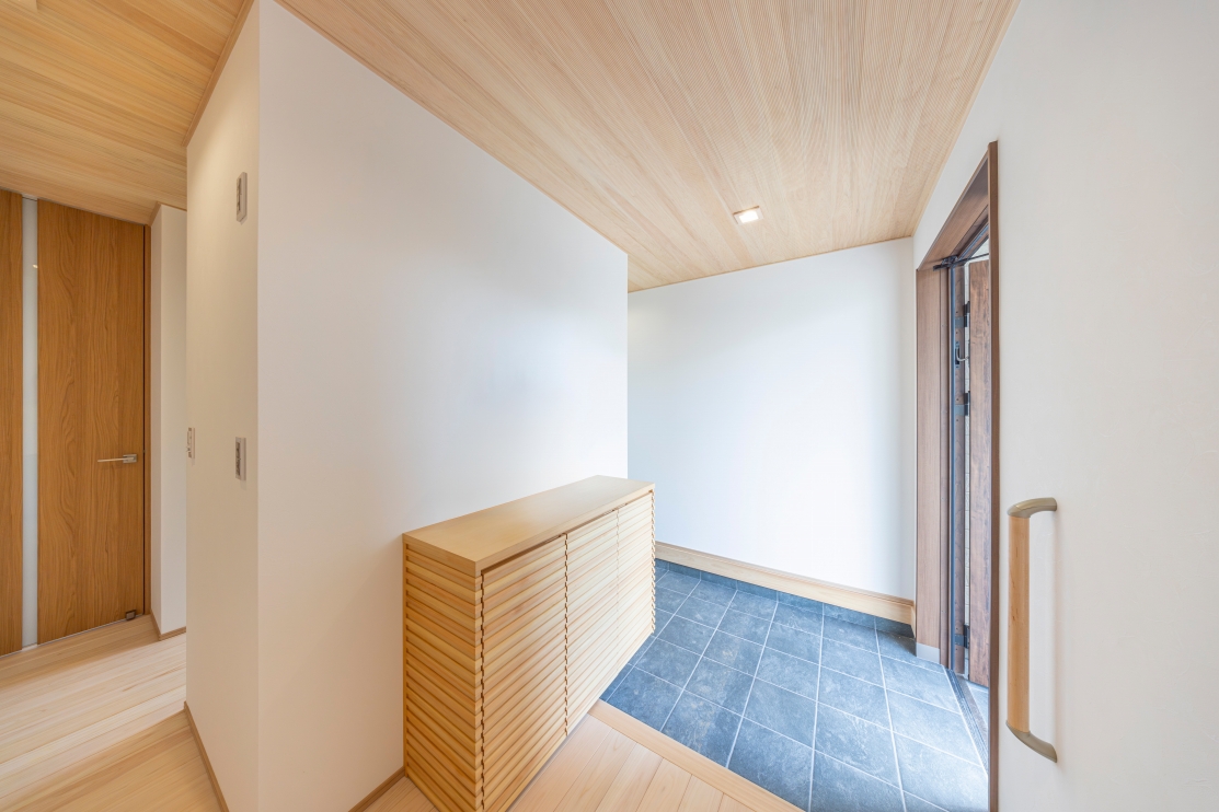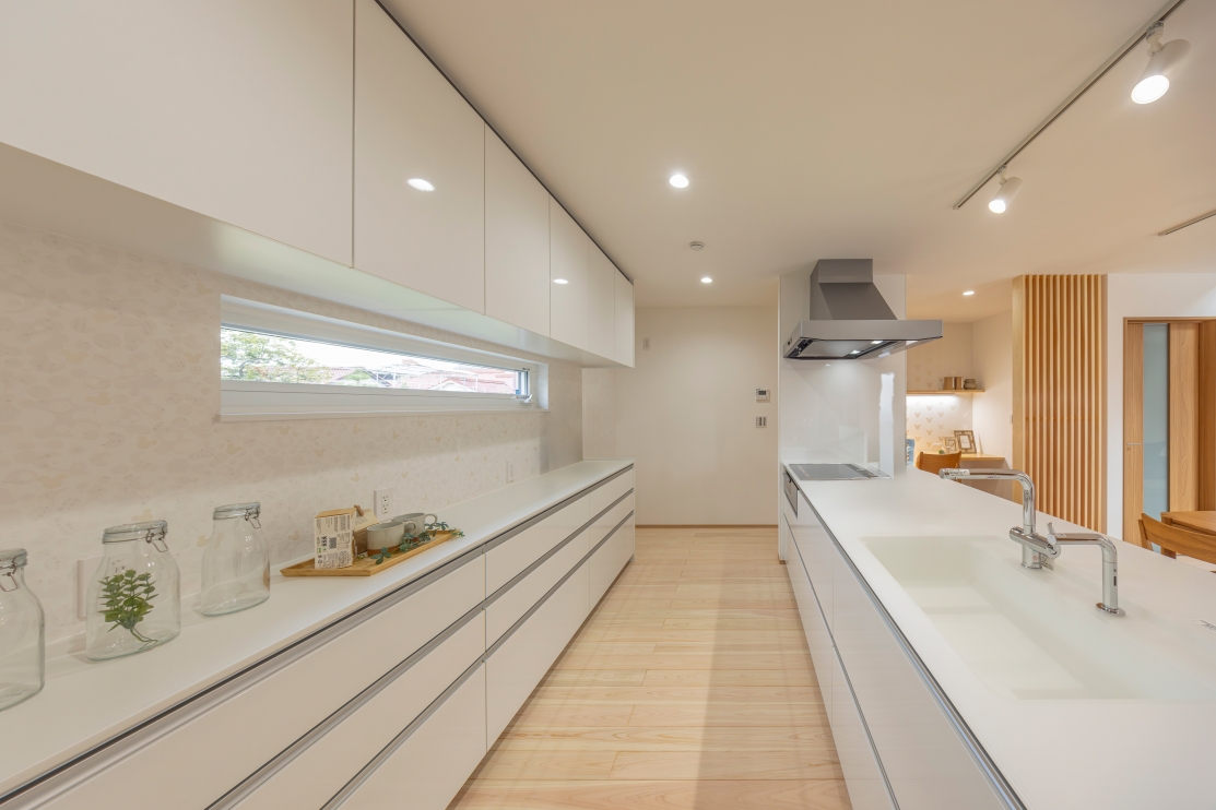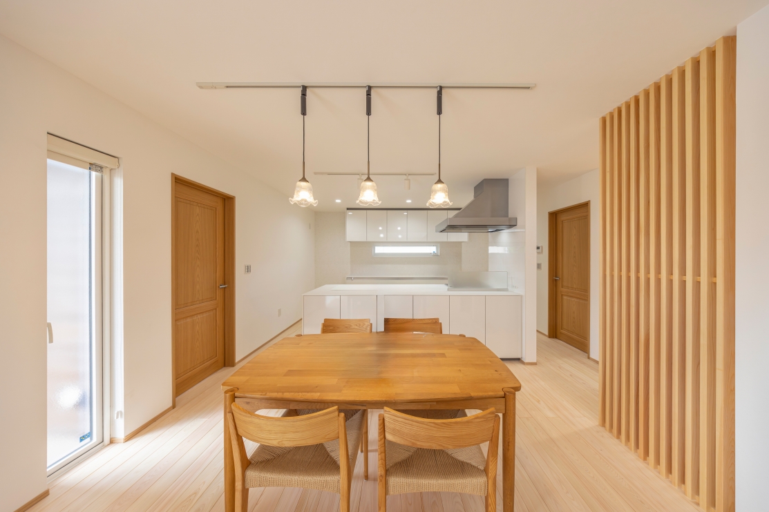 打合せには、いつもご家族皆様でご参加いただき、皆様の思いがたくさん詰まったお住まいが完成いたしました。床は桧で、やわらかく、経年の変化を楽しんでいただける素材を採用いただいたので、これからは住んでいただく過程で、より味わい深くご家族様らしいお住まいを築かれることが楽しみです。