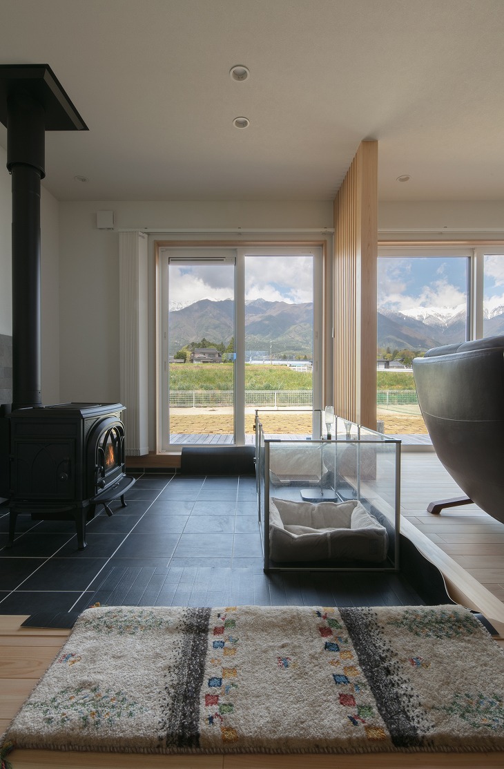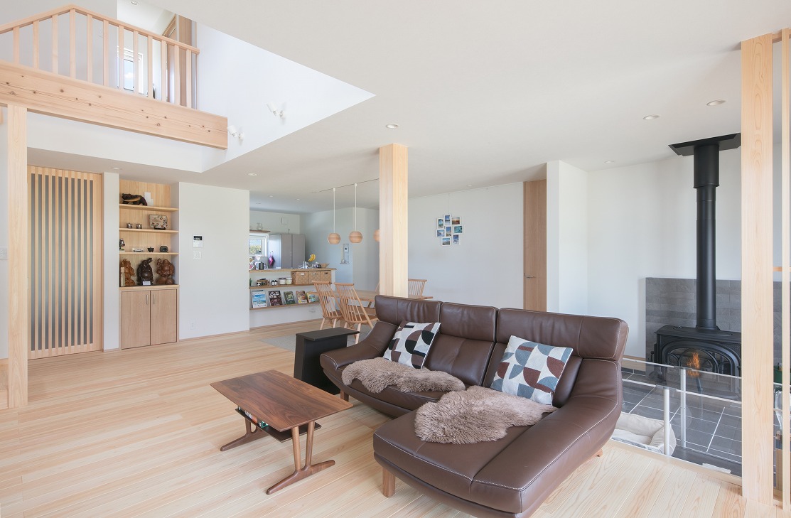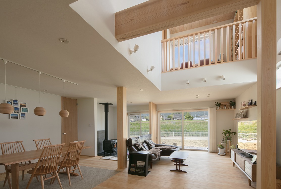 特徴 薪ストーブ 愛犬と暮らす家 ウッドデッキ 二世帯住宅 桧 吹き抜け