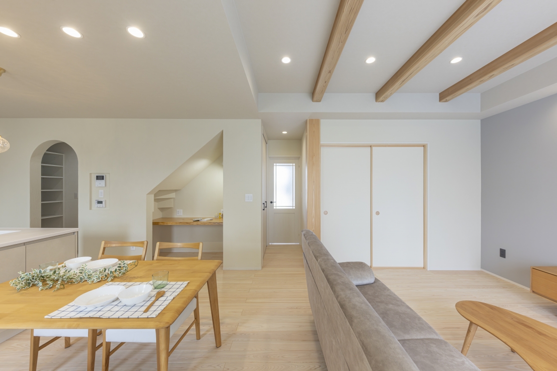 | 特徴 | 北欧風の外観 木質感あふれる内装 家事ラク Rの垂れ壁 |