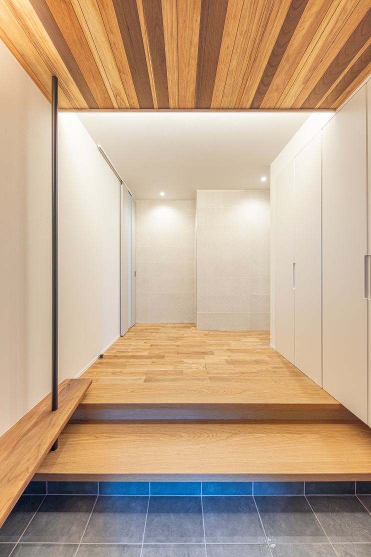 | 特徴 | ホテルライク 羽目板天井 上がり天井 下がり天井 間接照明 タイル張り オーク材 造作家具 |