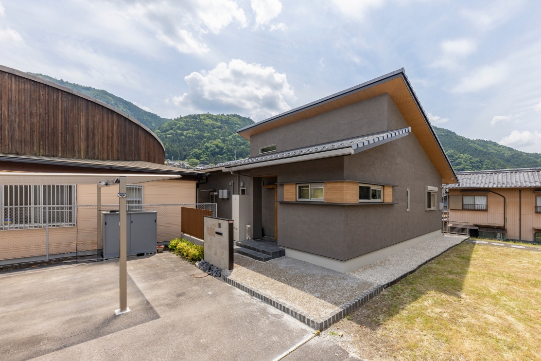#注文住宅, #ライフスタイル, #子育て世帯, #外観, #スタイル, #和モダン, #デザイン, #切妻屋根, #外装材, #塗り壁, #部屋別・場所別, #キッチン, #ペニンシュラ型, #I型, #リビング, #勾配天井リビング, #リビング収納, #リビング学習, #ダイニング, #ダイニングテーブル, #ダイニング収納, #玄関, #和室, #タタミコーナー, #小上がり畳, #寝室, #収納, #ウォークインクローゼット, #玄関収納, #ユーティリティールーム, #内装, #スタイル, #ナチュラルモダン, #勾配天井, #小上がりスペース, #内装材, #桧, #ウォルナット, #羽目板天井張り, #デザインウォール, #造作, #造作カウンター, #造作収納, #外構・エクステリア, #家族構成, #親子3~4人, #地域・エリア, #岐阜県, #白川町, #階数, #平屋, #面積, #20~30坪, #その他・追加