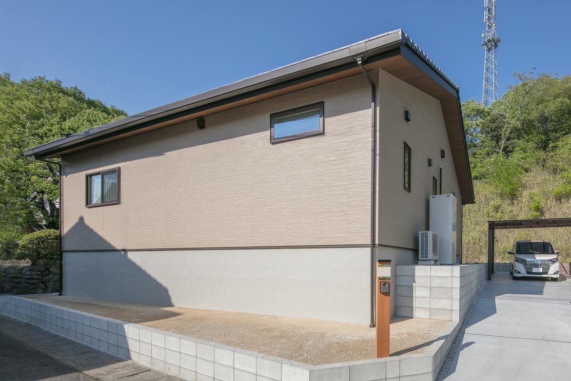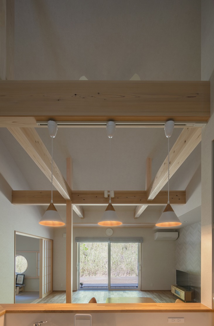 お客様のこだわりがたっぷり詰まったお住まいが完成しました。越屋根や勾配天井、丸窓、R壁、梁あらわし、回遊動線などやりたいことがすべて叶ったと喜んでいただけて、私たちもとても嬉しいです。土地探しからスタートした計画も、敷地の制限を考慮しつつ自然を活かした住まいづくりができて良かったです。
