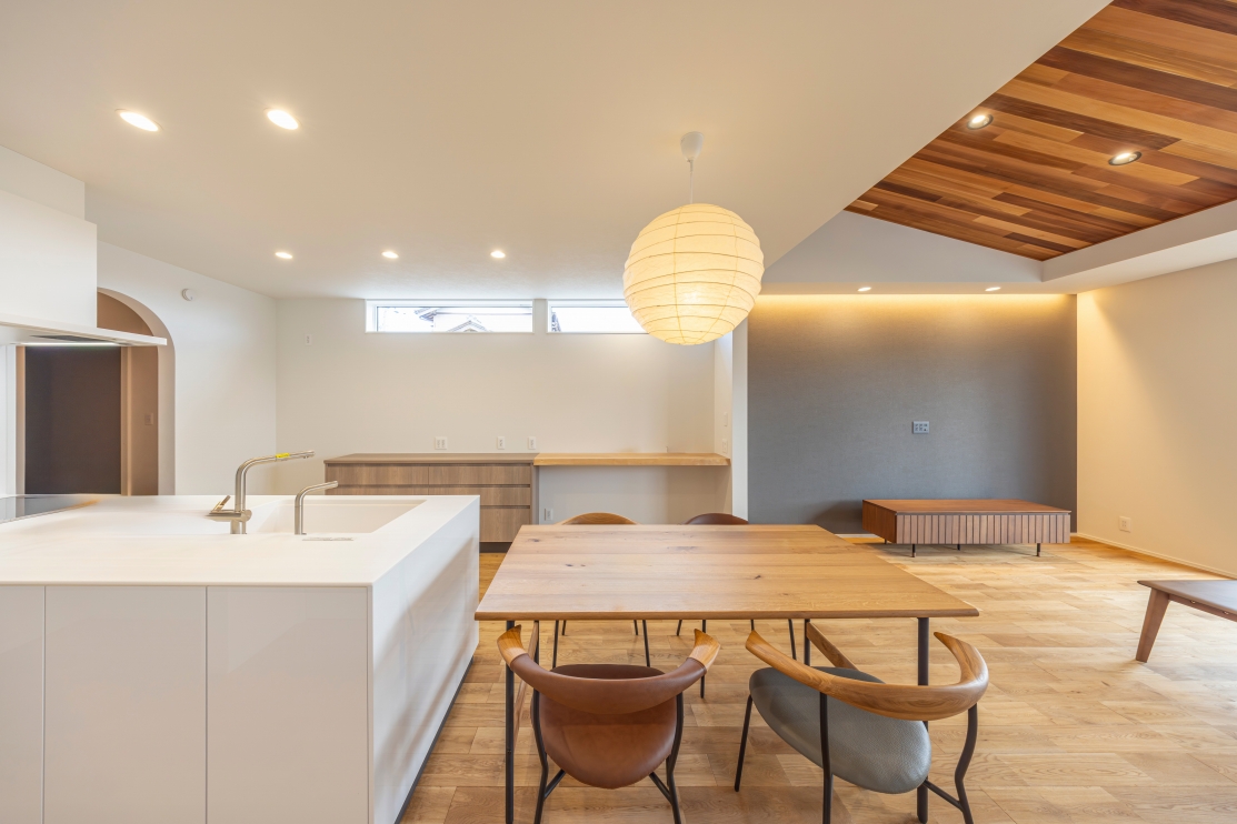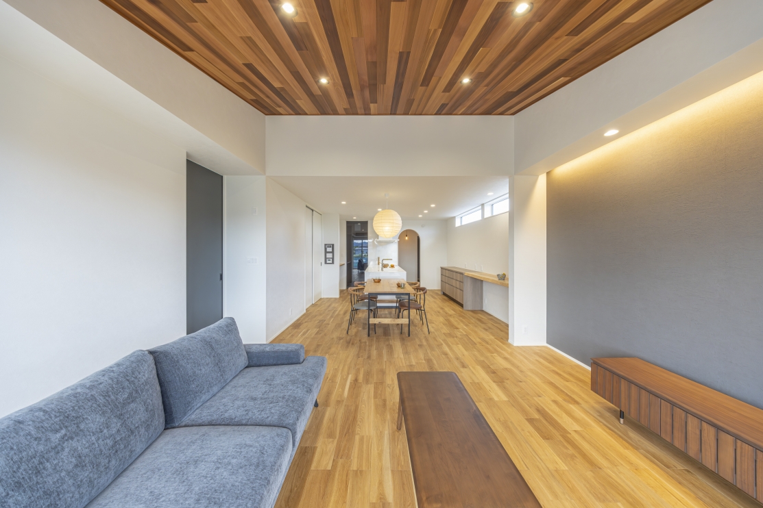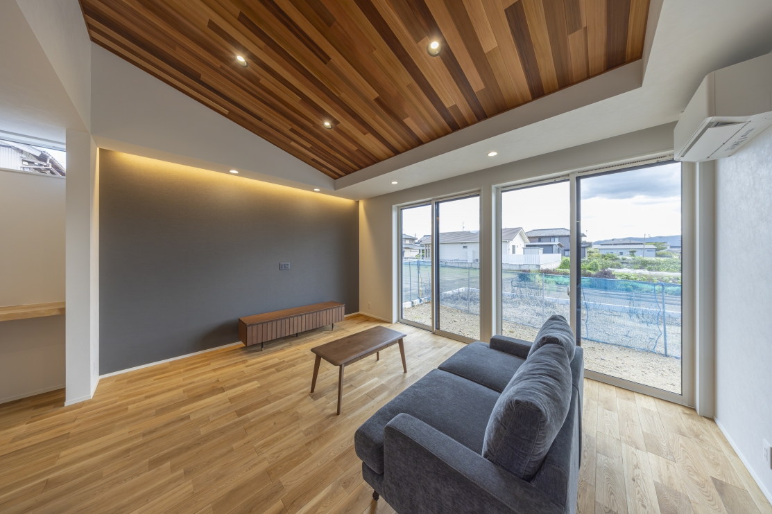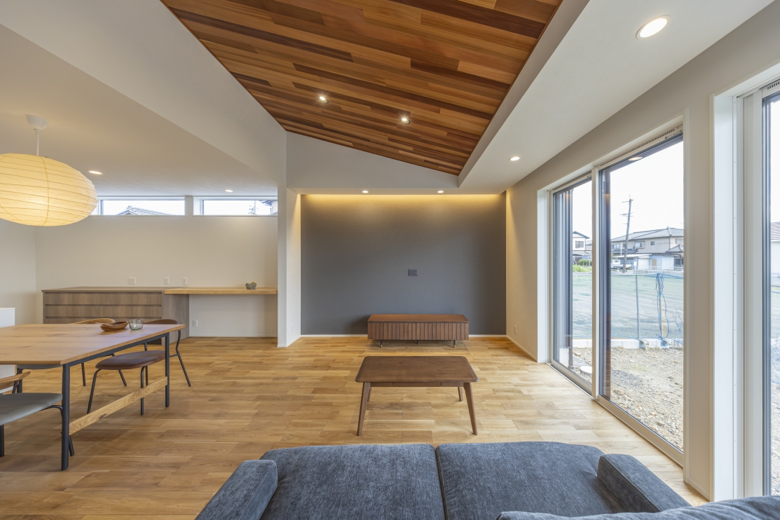 | 特徴 | 平屋 共働き 羽目板勾配天井 間接照明 |