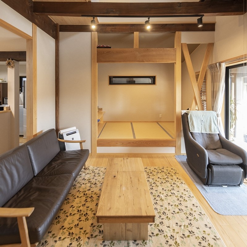 畳の大広間も昔ほど頻繁に使うこともなくなりましたから、玄関を中央に移動させたことで、リビングを通らなくてもお客さんを座敷に案内できるようになりました。リビングで気楽にくつろいでいられますし、どの場所も有効に使える間取りになったと思います。